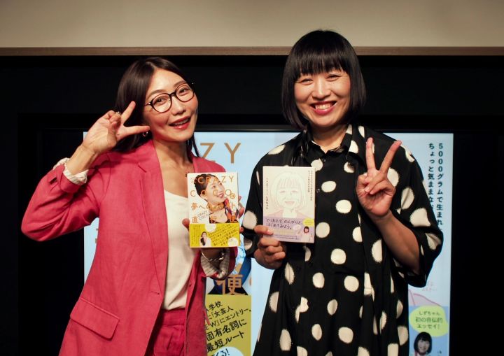 ブラック企業の商社OLからキラキラの外資系CAを経てお笑いの世界に飛び込んだCRAZY COCOさんが、著書『元CA芸人 CRAZY COCOの夢へのフライト直行便』(ヨシモトブックス)にちなんだトークライブ、「女の人生は『挑戦』が9割」を開催。昨年『5000グラムで生まれた女のちょっと気ままなお話』(ヨシモトブックス)という自伝的エッセイ本を刊行し、漫才のみならず、女優、ボクシング、アートとさまざまな挑戦を続けてきた、南海キャンディーズ・しずちゃんをゲストに迎え、挑戦することで人生を切り開いてきた2人が、「みんなを元気づけたい!」をテーマにトーク♡その模様を一部抜粋してレポートします!