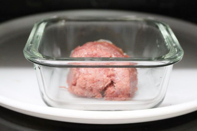 缶詰のコンビーフは冷たくて固まっているので、レンジで少し温めます。