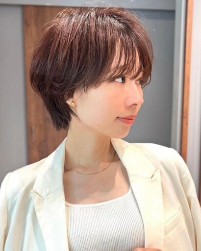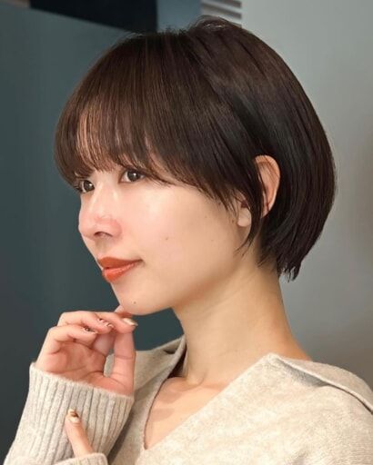 また、少しレングス長めのショートボブなら、あごに向かってシュッと締まった印象になるように、ひし形のシルエット作りを意識しましょう。