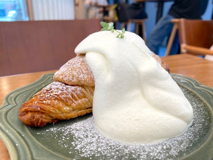 フランスのパリが発祥で、切り込みをいれたクロワッサンの間とトップにクッキー生地をのせて焼き上げたもの。サクサク、ザクッとしたそれぞれの食感の特長をいいとこどりした進化系クロワッサンとして海外で話題になっているんです。