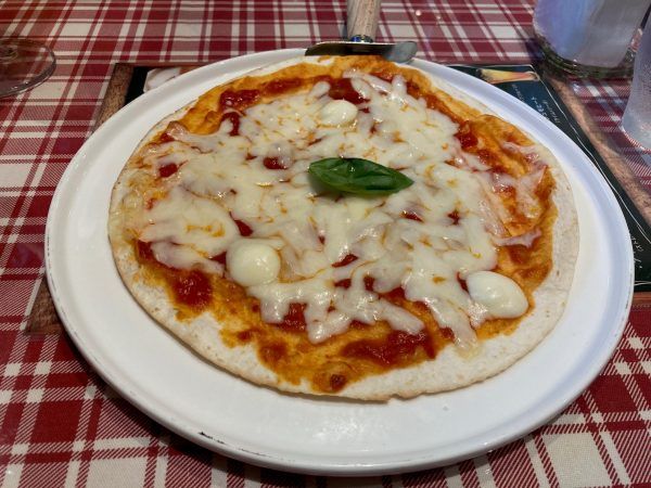 ピザは、かなり薄生地のクリスピータイプなのでさっくり食べられます。 トルティーヤ生地を焼いたような感じです。