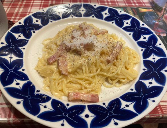 パスタはカルボナーラにしました。 あっさりとした味付けで、チーズは店員さんがその場で削ってかけてくれます。 削りたてって、チーズの風味がより漂うので食べるのが楽しみになりますよね。