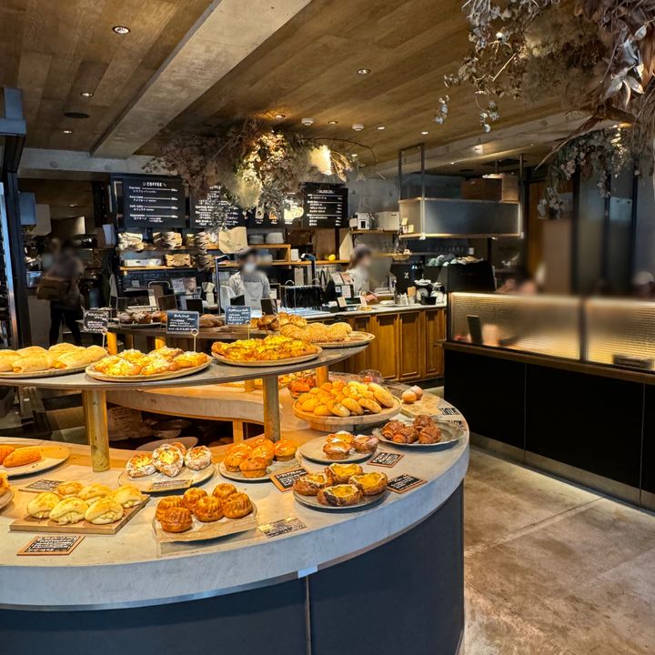 特徴的なカウンターにたくさんの種類のパンが並んでいます✨この日は平日の12:30〜13:00頃に行ったのですが、それでもこれだけ種類豊富!全部美味しそうで選ぶのにとっても苦労しました🫢