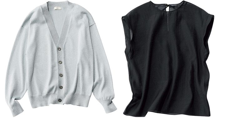 ラメカーディガン¥19,910シアーブラウス¥ 13,970(ともにネイヴ/ネイヴ〈オンワード樫山〉)