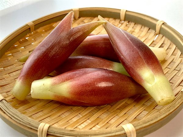 1.  みょうがはよく洗い、ぬめりの原因となる表面の汚れを落とします。みょうがの軸部分が傷んでいたら切り落とします。