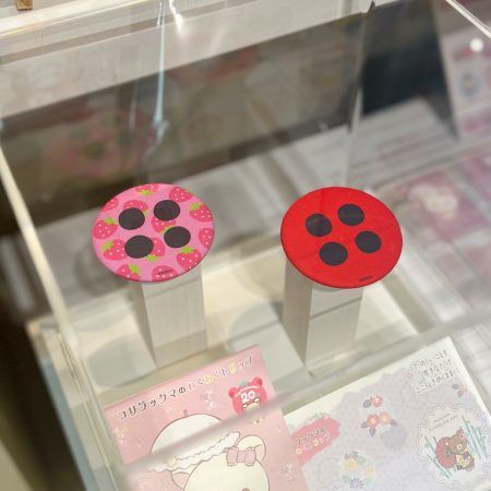 グッズの購入でもらえるノベルティは2種類です。 第1弾は、コリラックマの【だいじ】なチャームポイントのボタンが布缶バッジになった「コリラックマのボタン布缶バッジ」。 各会場でデザインが異なり、東京はこちらの2種類です。