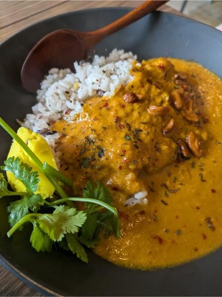 パクチーも乗っています! まろやかさと深みの中にしっかりとスパイスが効いて、これもまたすごくおいしい!