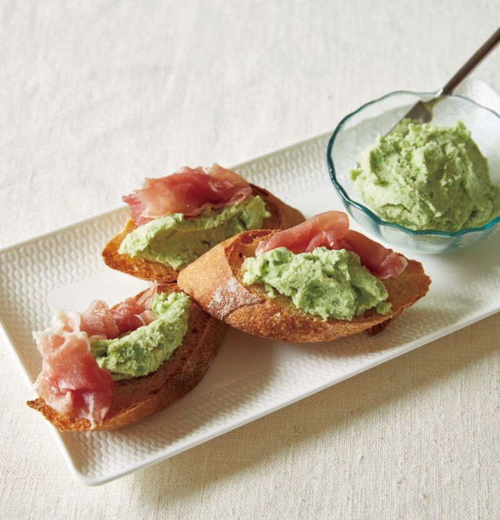 2に1を加えて麺棒などでそらまめをマッシュ状につぶし、塩・こしょうで味を調える。