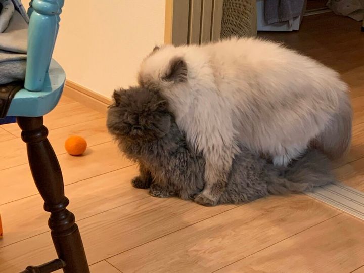 ねこ、こねこ「はじめまして。ねことこねこです。白くてもふもふの兄・ねこと、グレーのもふもふが弟・こねこだよ。ちょっと変わった名前でしょ? ぼくたちはいつもいっしょだよ! もふもふ」