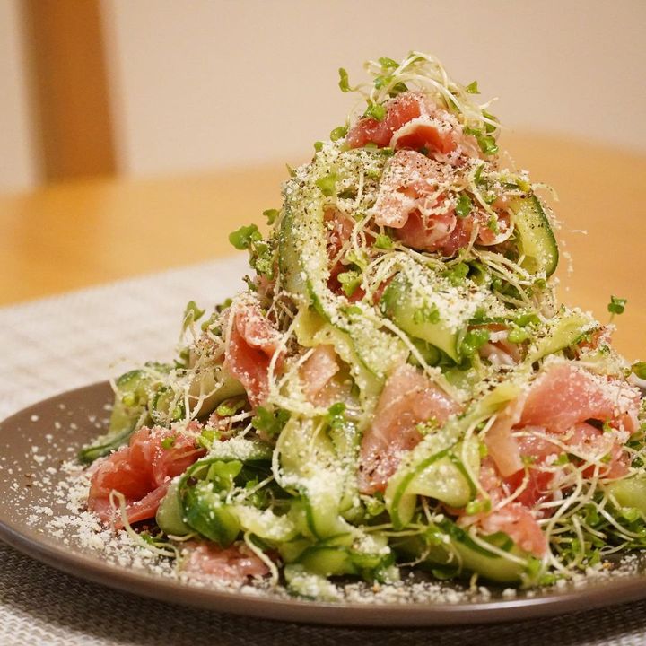 ピーラーだけで華やかに仕上がるお料理初心者さんにもおすすめの一品は、ランチやお酒のおつまみはもちろん、おもてなしにもぴったりです。