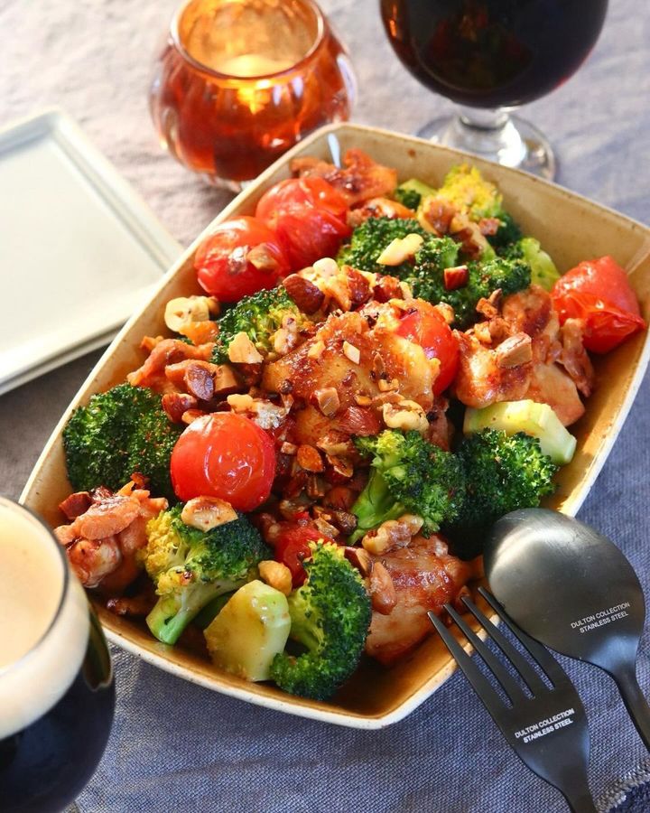 ブロッコリーも茹でずにオリーブオイルと塩で蒸し焼きに。ボリューム満点で子供から大人まで喜ばれること間違いなしのサラダは、ホームパーティーにもいいですね。
