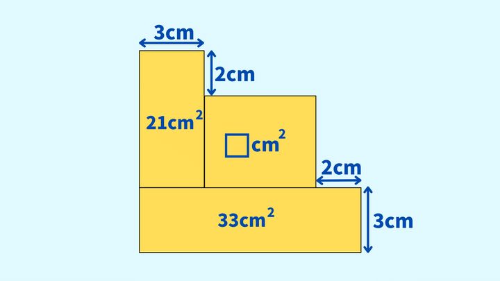 Bは「縦8cm、横9cmの四角形(72cm2)の面積」であり、三つの小さな四角形を合わせたものになっています。