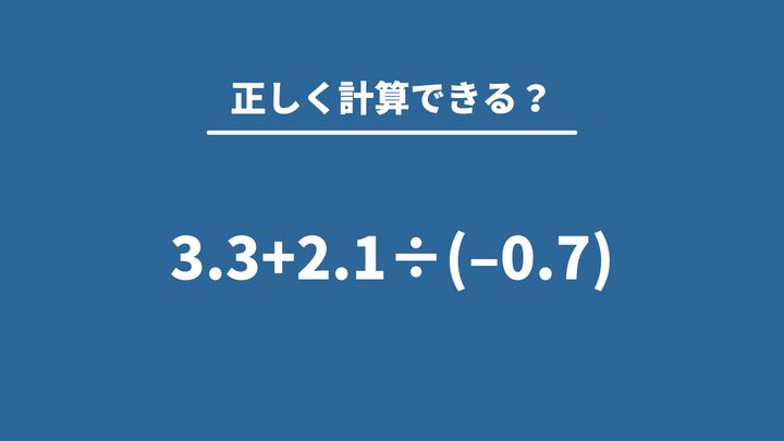 一瞬で解けたら天才かも?!「3.3+2.1÷(−0.7)」→正しく計算できる?