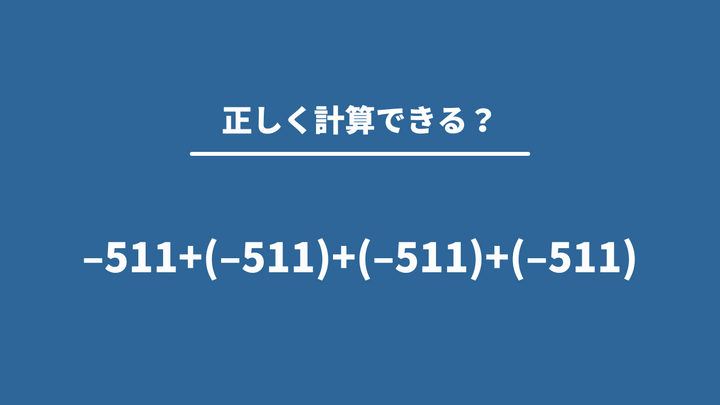 大人が意外と間違える「−511+(−511)+(−511)+(−511)」→正しく計算できる?