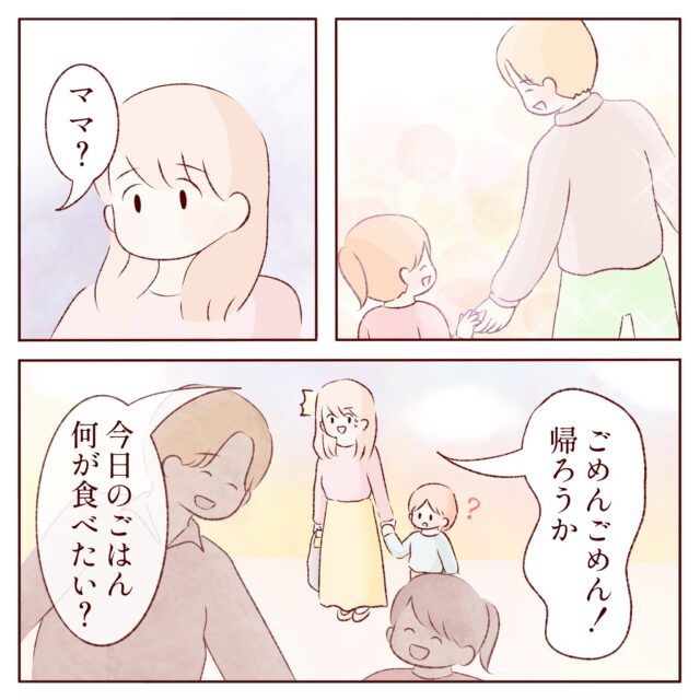 「ごめんごめん!帰ろうか。今日のごはん何が食べたい?」