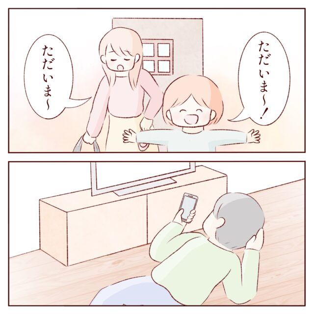 私とツバサに気付いているのかいないのか・・・リビングにいた夫はスマホに夢中で返事もしません・・。