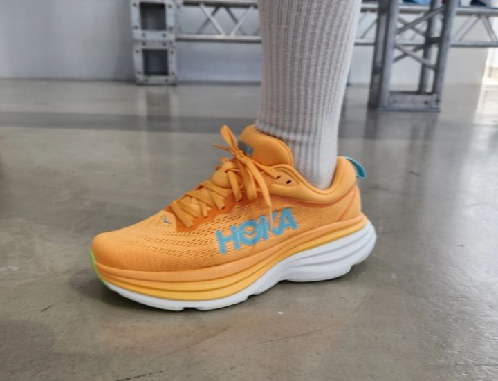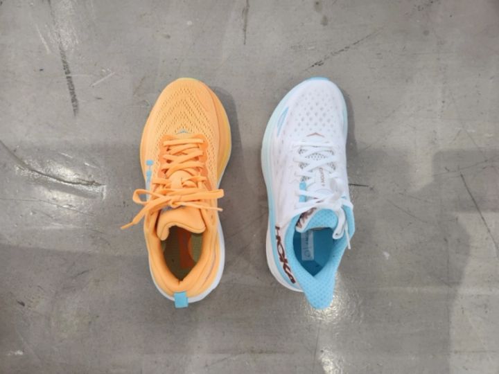 私は足の指が長く、遊びも欲しいためクリフトンを愛用していますが、この日はボンダイの軽さと、ふわっとかかとから足全体を包み込むような感覚に思わず感激。次の1足として購入を検討しています!!さらに、クリフトンとボンダイにはミッドソールの厚さに違いがあるので、必ず試し履きをしてから、好みの物を選んでくださいね。