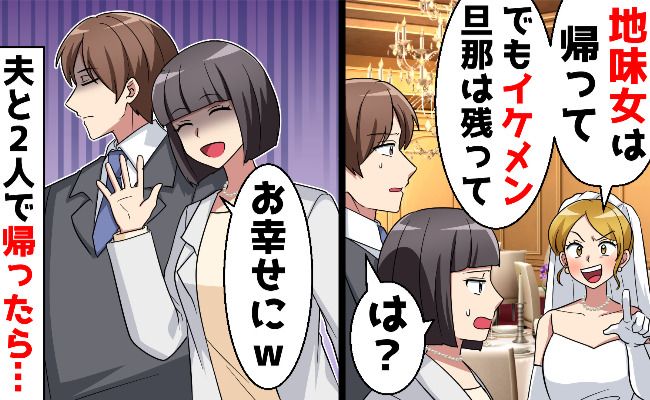 そんな義姉を冷ややかに見つめていると、それに気づいた義姉は、私を「地味女」と言って笑います。それに飽き足らず、義姉は私がいると結婚式が地味になると罵り、用意されていた私の席を外すようスタッフに指示を出したのです。