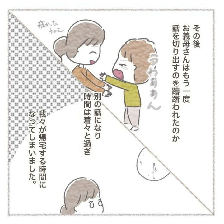 夫がこれまで義母に対して強い口調で話すことを疑問に思っていましたが、その理由もわかったようです。義母と夫の関係性に気付けたのは、義母との距離が縮まったからこそかもしれませんね。