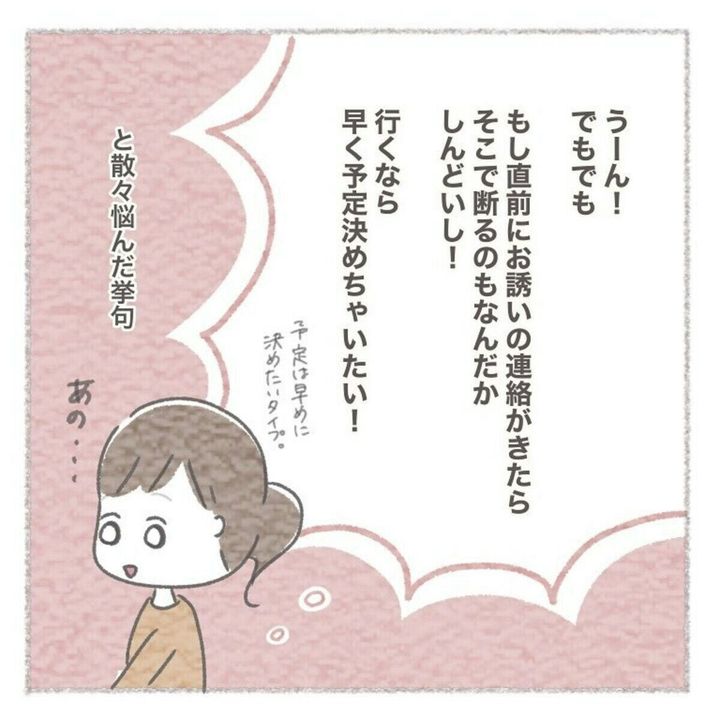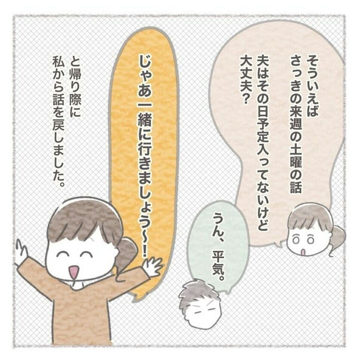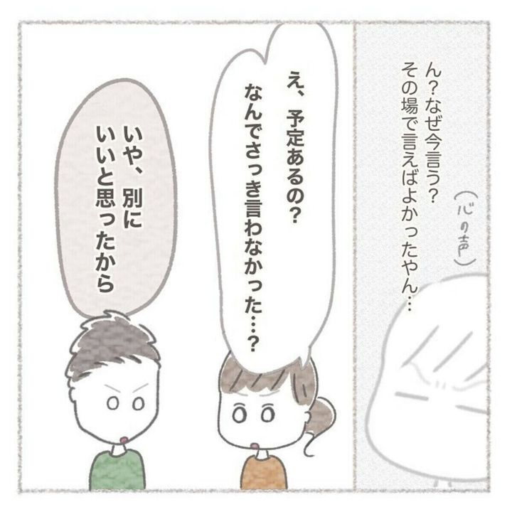 しかし、後になって夫は急に「その日、用事あったんだけどね」と言い出したのです。どういう意図で行けると言ったのでしょうか…。夫にもやもやしてしまうペンコさんの気持ちが伝わってきます。