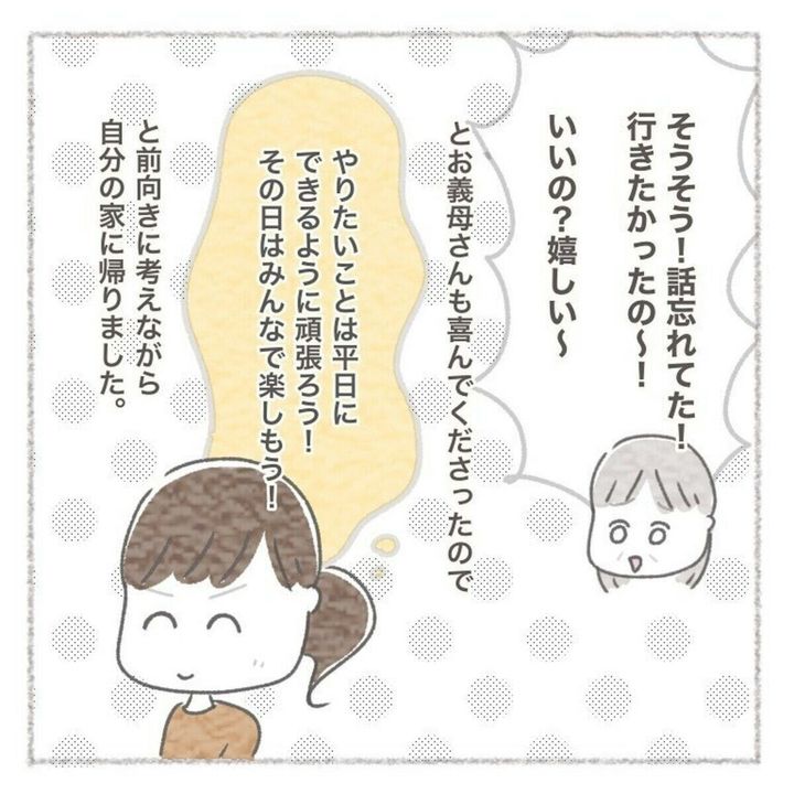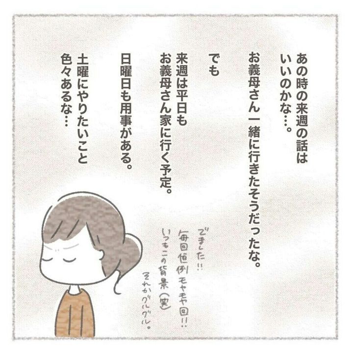 家族4人で義実家へ遊びに行った日のこと。義母からみんなでお出掛けしたいところがあるというお誘いを受け、夫にも予定を確認した上で「みんなで行きましょう」ということに。