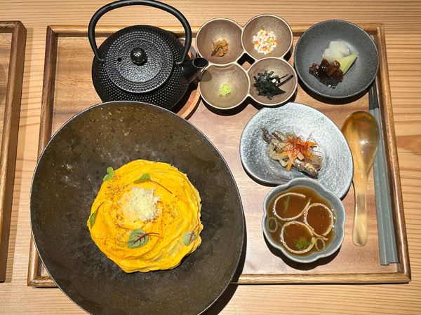 ペアリングには、香りと味のバランスが良く、さわやかな喉越しの「金萱烏龍茶(キンセンウーロンチャ)」(+800円)を。ふわっと立ち上がる「奶香」と呼ばれるミルクのような甘い香りが特徴のお茶です。