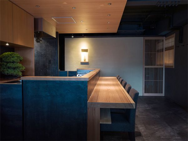 店内はグレートーンのシックなカラーで統一され、木目調のカウンターやテーブルが温かみを演出。店内の中央には、「日本の伝統文化である盆栽を世界に伝える」というミッションを掲げる「TRADMAN‘S BONSAI」を率いる盆栽プロデューサー小島鉄平さんの美しい盆栽が飾られています。