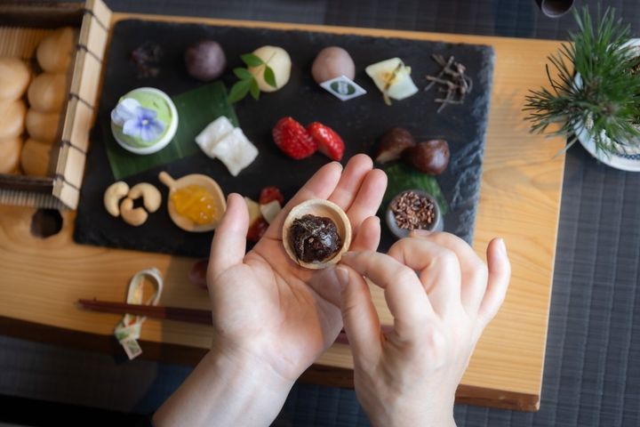 組み合わせは無限大⁇ あんことトッピングの化学反応が楽しい、自分で作る最中