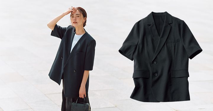 『半袖ジャケット』が夏のモノトーンに効く!羽織れば涼しくきちんと見え