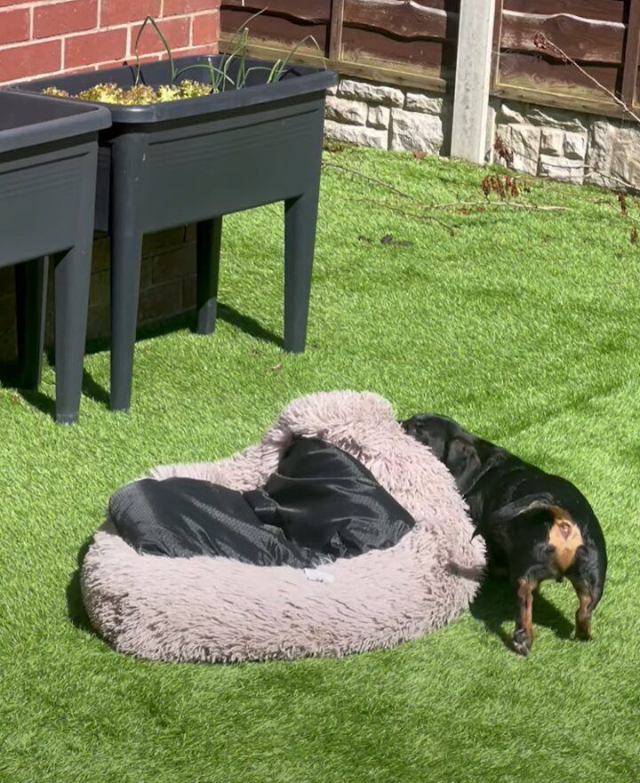 3. ヨイショ・・ヨイショ・・とベッドを運ぶダックスフンド。最高のお昼寝の準備中!!【海外・動画】