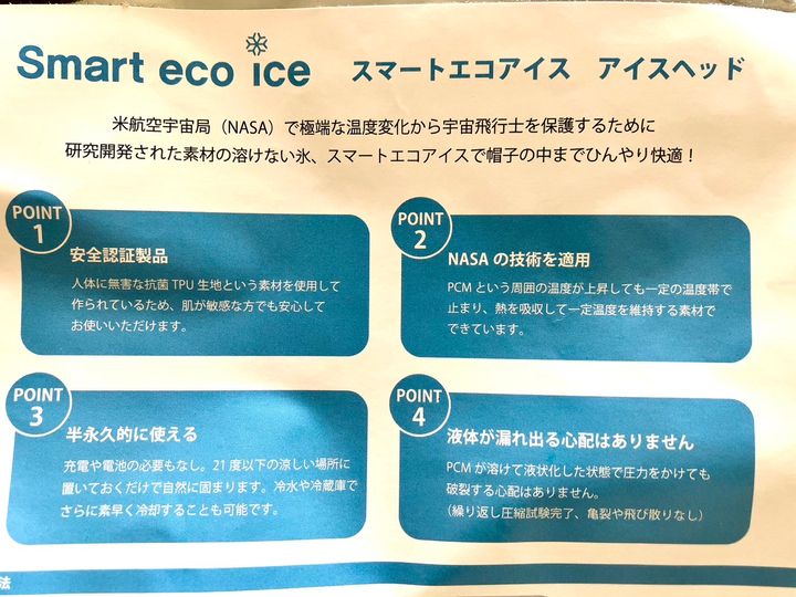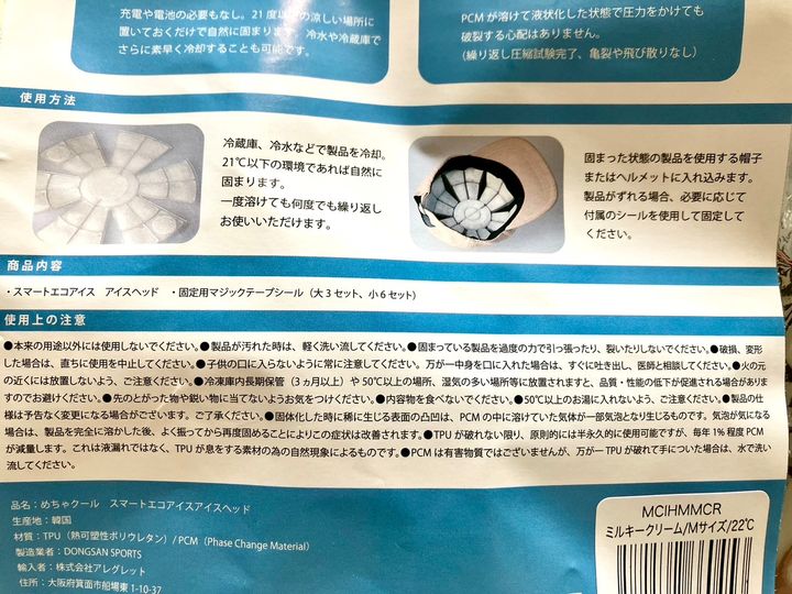 首を冷やすアイスリングと同じ素材で、繰り返し使えるのも嬉しいです。帽子の中に入れるだけで頭がひんやり♪レジャーにも大活躍してくれることを期待しています。
