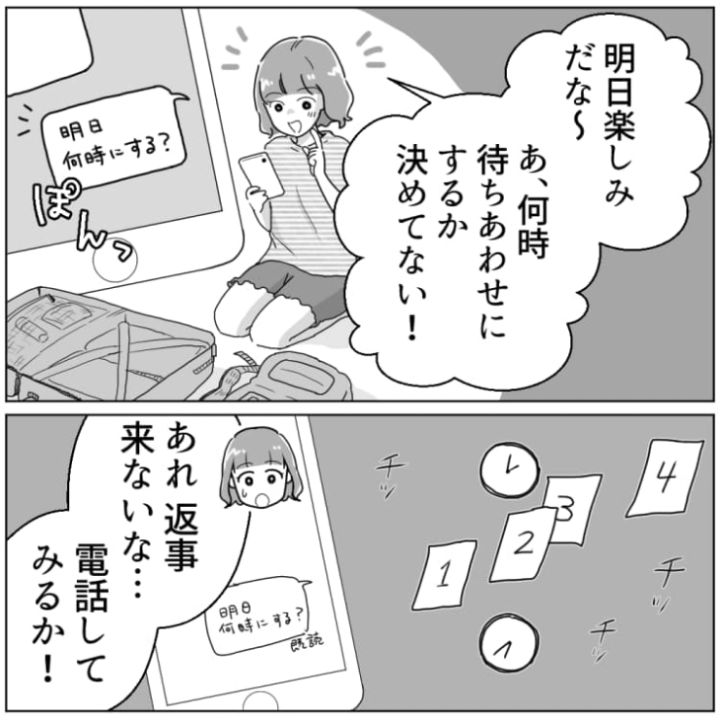 実際に読者が体験したリアルエピソードを漫画化!今回は、約束の前日に連絡が取れなくなった友だちとのエピソードです。