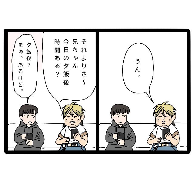 「うん。それよりさ~、兄ちゃん、今日の夕飯後時間ある?」
