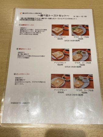 グランドメニューの他、モーニングのトーストやティータイムのスイーツのメニューもあります。