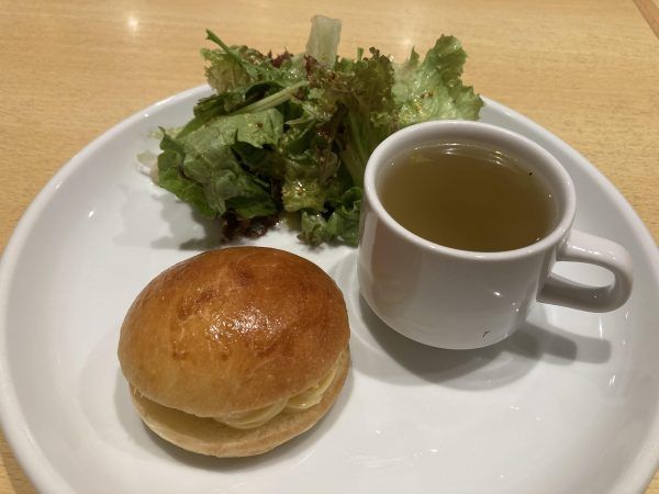好きなパンに、プラス200円で小さなサラダとスープが付けられますよ。