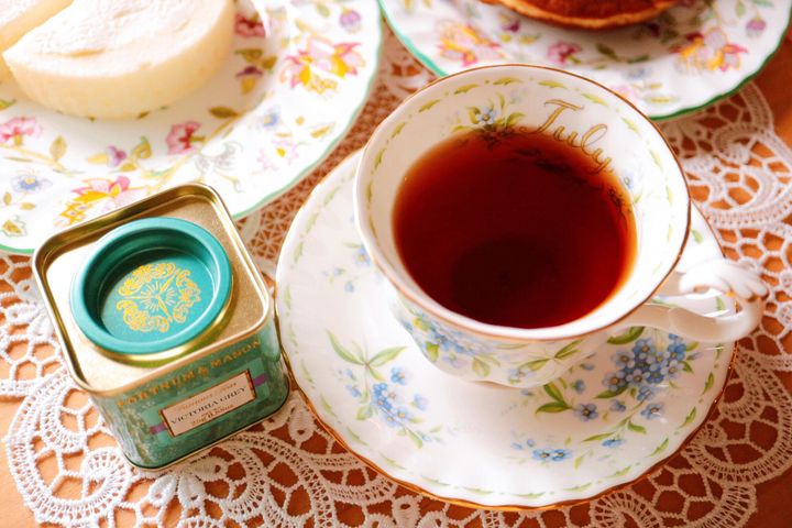 今回のMilkとコラボしたスイーツに合わせた紅茶はフォートナムアンドメイソンの「ビクトリアグレイ」です。ベルガモットで香りづけされたインド産の紅茶に、ラベンダーやヤグルマギクの花びらの豊かな香りが広がります。ハチミツも香りづけされています。ほのかな甘みも感じられ、生クリームのスーツにはピッタリのように思います。