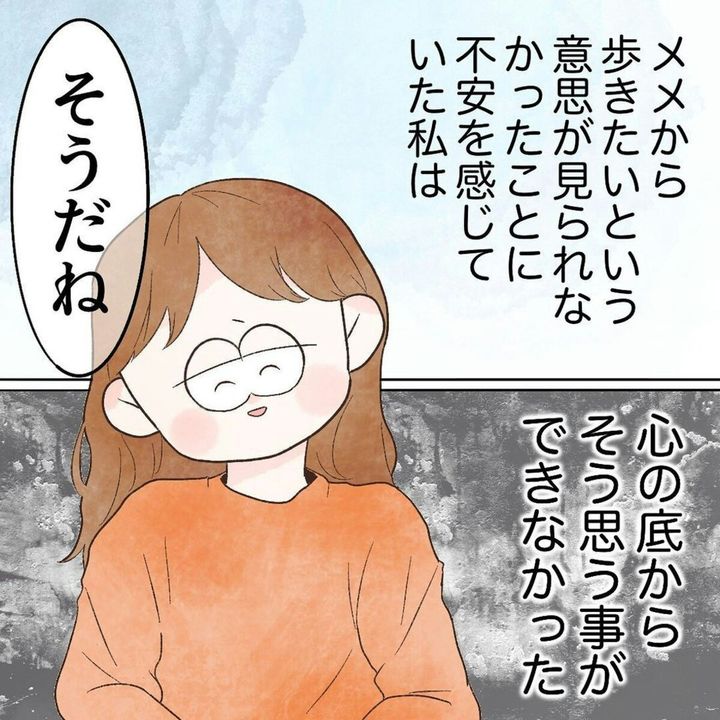 まろさんはメメちゃんがケガを怖がる様子に胸を痛め、ケガを避けたい気持ちが強まる日々。しかし、ある日、祖父からメメちゃんのケガは「名誉の負傷」と声を掛けられ、その言葉をきっかけに心境が変化します。