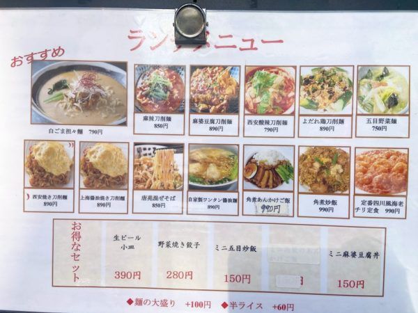 ランチタイム(750円~)で担担麺・炒飯・エビチリ定食等様々な中華料理をいただくことができます。生ビールと小皿や野菜焼き餃子等お得なセットにもすることもできます。ディナーでも、様々な中華料理を堪能できますよ。