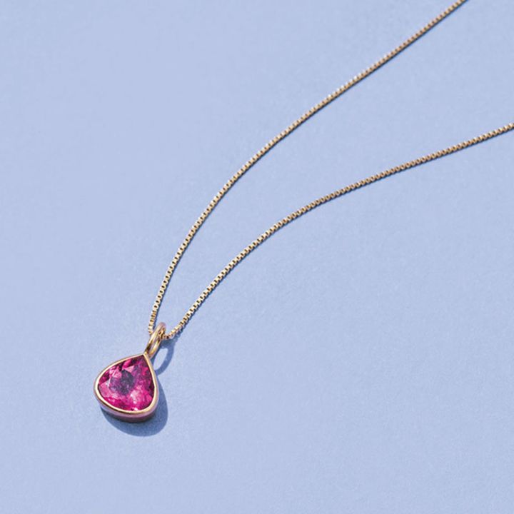 カラーストーンのジュエリーは「惹かれる色に出合ったら買う」がマイルール。ぽってりとしたシェイプも購入の決め手。チャームの取り外しができるので、ほかのチェーンとのコーディネートも楽しめます。(スタイリスト/児嶋里美さん)