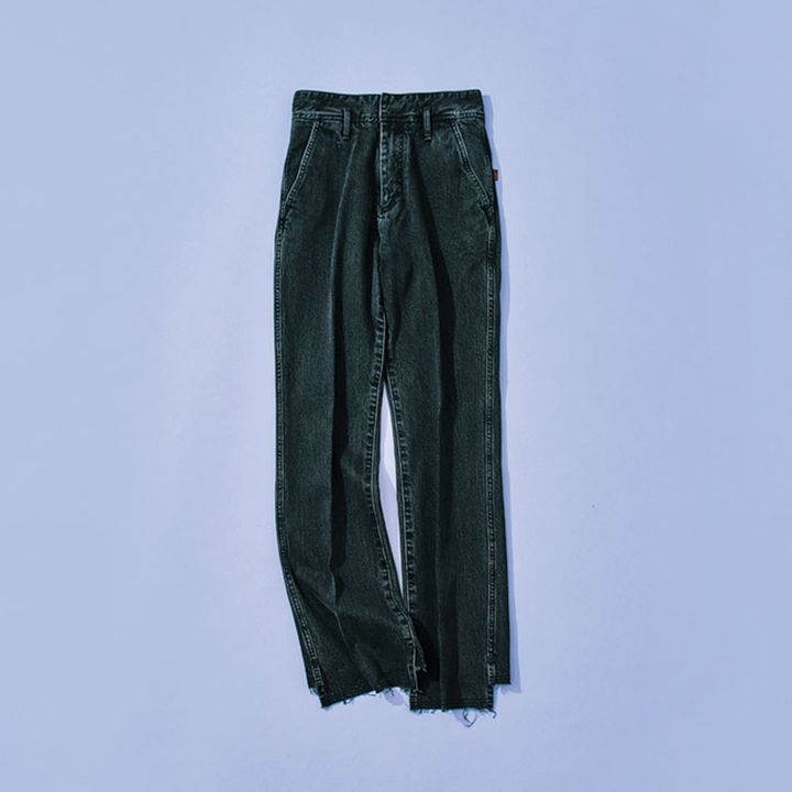 黒の色味、フレアシルエット、裾が地面すれすれになるバランス、すべてが新鮮なブラックデニム。ジャストウエストのデニムが主流ななか、腰を少し落としてはくゆるっとしたサイズ感もストレスフリーで◎。(ライター/野田春香さん)