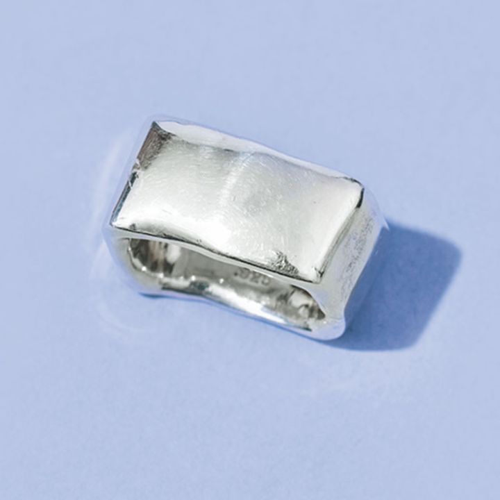 アクセサリーはゴールドが多いのですが、カジュアルにつけられるハンサムなものが欲しくなり、シルバーのスクエアリングを。オブジェのような存在感で、これひとつでアクセントになるので気に入っています。(スタイリスト/三好 彩さん)