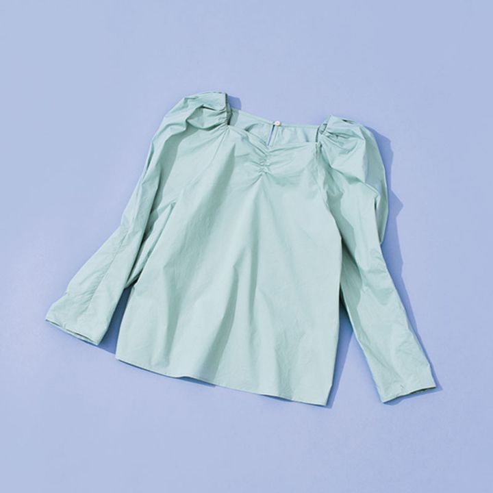 甘めアイテムが欲しくなったらまずチェックするエディットフォールルで、デニムに合わせたいちょっぴり乙女なブラウスをポチり。絶妙なカッティングと立体袖が、上半身をコンパクトに見せてくれます。(編集/陣内素実さん)