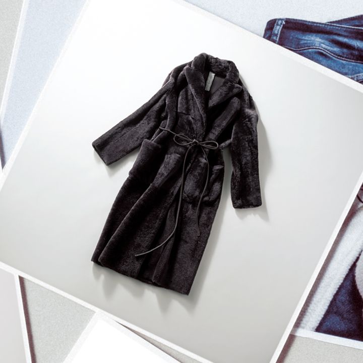 展示会で気になっていたコートに、その後お店でまた巡り合いました。ブラウンがかったダークグレーが絶妙で、ふんわり丸みのあるシルエットなのに着膨れせず、レザーのベルトも可愛い。羽織ったところで決めました。(ライター/駿河良美さん)