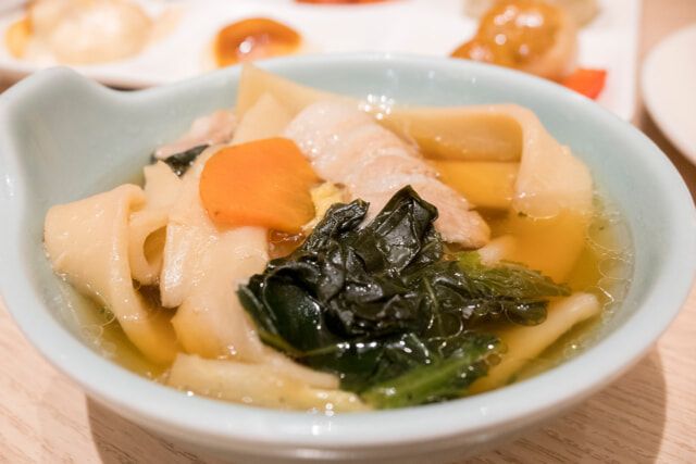 群馬のご当地麺「おっきりこみ」も用意します。幅広い麺を煮込んだ鍋料理で、群馬県のブランドポーク “上州豚” や野菜、キノコなどもたっぷり。豚肉の旨味が出た醤油ベースの優しい味わいは、身も心も温かくなる一品です。
