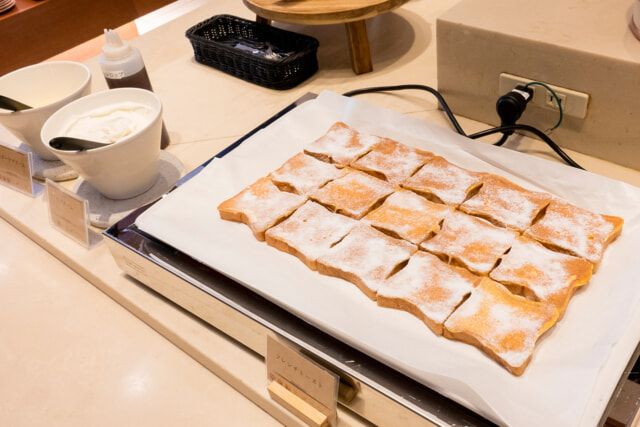 ミニ食パンを使った「フレンチトースト」が整列する様子も可愛らしかったです。食感を残すため、卵液にあまり浸し過ぎないのもこだわりポイントだとか。パウダーシュガーが降りかかり、いつもと違うフレンチトーストはちょっとした特別感でした。