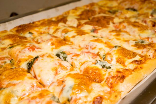 ピザはあえてパン生地を使い端までふっくら。素材の味そのものを感じられるようにシンプルな味付けです。手作りのトマトソースやたっぷりのモッツアレラチーズに、朝採れのバジルをトッピング。熱々のまま頬張るのが美味しさの秘訣です。