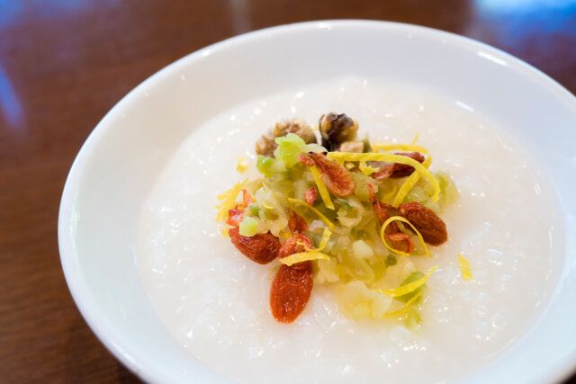 トロトロに煮込まれたお粥は優しい味わい。胡麻やクコの実などのトッピングも楽しめます。季節によってはベトナムのライスヌードル「フォー」を用意することもあります。