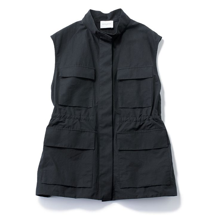 スタンドカラーで都会的。ウエストの絞りでスタイルアップ効果も。ベスト¥31,900(ユナイテッドアローズ/ユナイテッドアローズ 六本木ヒルズ店)