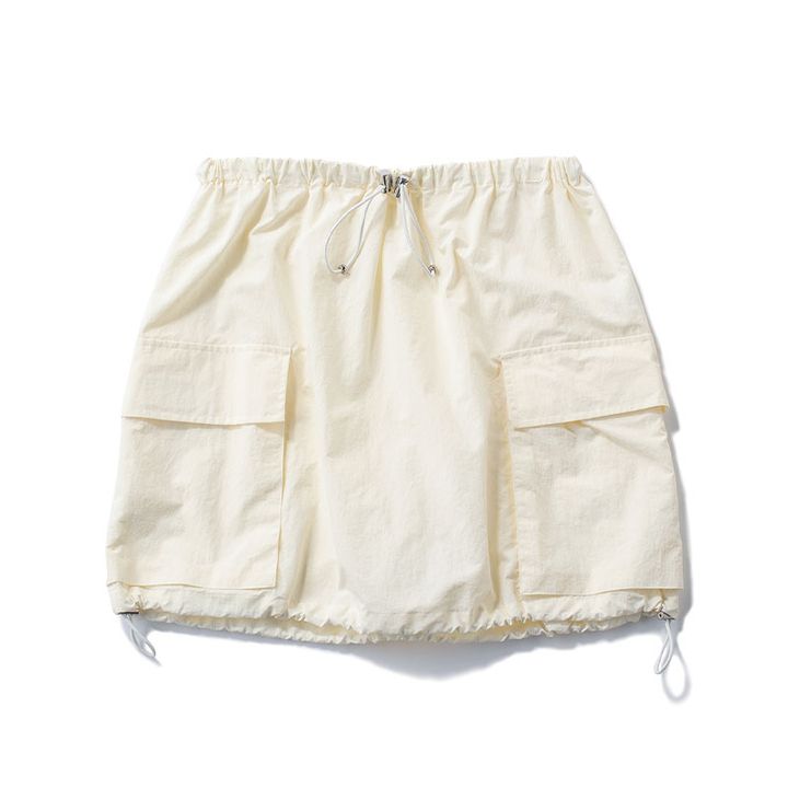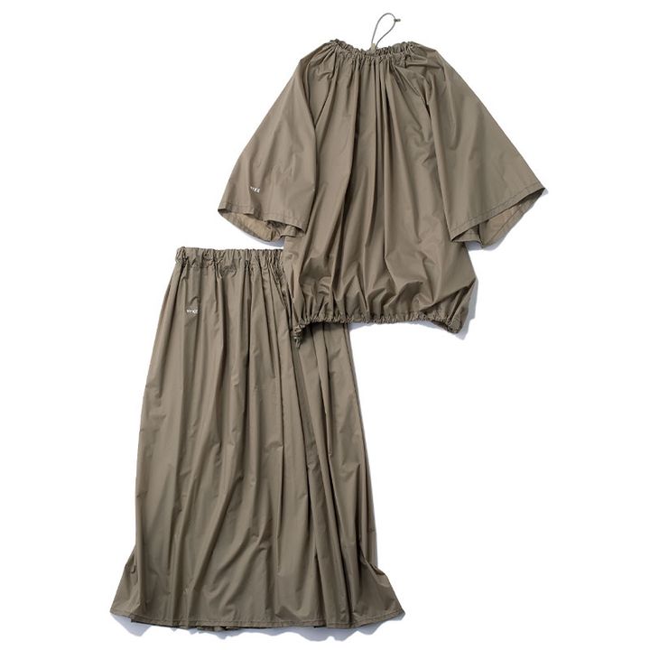 超軽量なタフタ素材、リップストップで丈夫なのでアスレチックもOK。トップス¥35,200ラップスカート¥33,000(ともにハイク/ボウルズ)