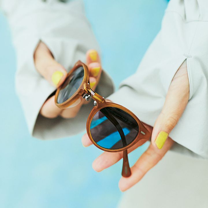 取扱いに気を使うサングラスも省スペースで負担を軽減。ラッシュガードは実用的なだけでなく、モックネックやショート丈でトレンド感も兼備!トップス¥14,300ショートパンツ¥9,350(ともにノーク)サングラス¥54,010(オリバーピープルズ/ルックスオティカジャパン カスタマーサービス)バッグ¥2,860(フレッシュサービス/フレッシュサービス ヘッドクォーターズ)ハット¥8,690(シー/エスストア)ピアス¥16,500(ジュエッテ)【KIDS】ワンピース¥12,100(ノーク)サンダル/スタイリスト私物
